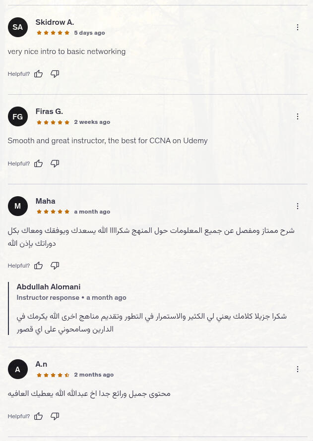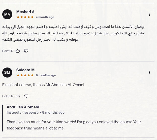 دعمكم المستمر لي يعني لي الكثير وأيضا يحسن من جودة الدورات مستقبلا