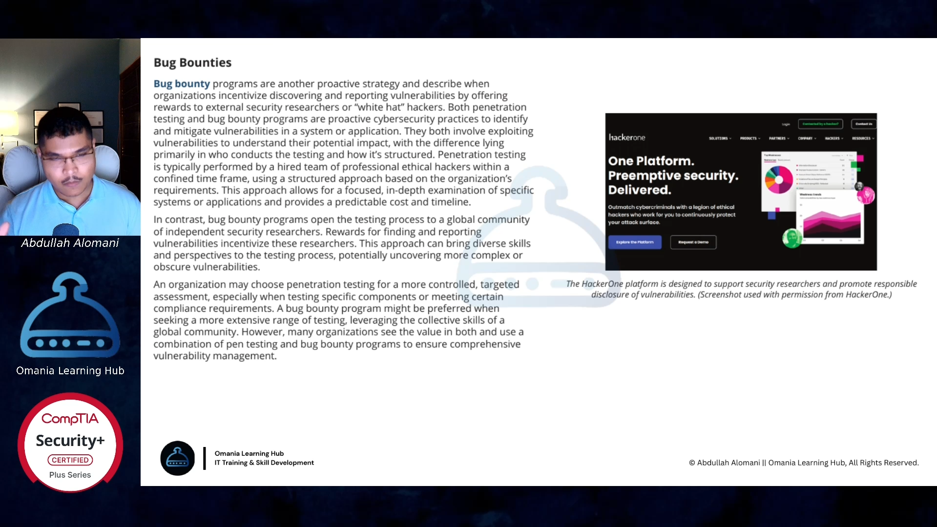 تستعرض هذه الدورة المبادئ الأساسية للأمن السيبراني وركائز حماية الشبكات والأنظمة، مع تقديم شرح مفصل لأنواع التهديدات السيبرانية وأساليب الهجوم المختلفة واستراتيجيات التصدي لها. يتناول المحتوى الجوانب التقنية المتعلقة بجدران الحماية وأنظمة كشف التسلل وتقنيات التشفير، بالإضافة إلى آليات إدارة الهوية والوصول (IAM). كما تغطي الدورة محاور الحوكمة الأمنية وإدارة المخاطر وإجراءات الامتثال للمعايير الدولية، مع تسليط الضوء على التشريعات والقوانين والسياسات المنظمة للمجال، مما يوفر قاعدة معرفية صلبة للمهنيين الراغبين في اكتساب الأسس العلمية اللازمة للتخصص في أمن المعلومات